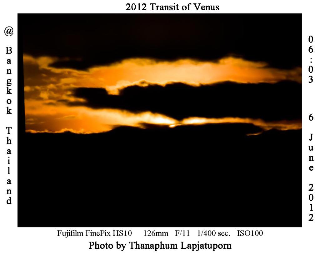 ถ่ายรูปที่โรงเรียนสวนกุหลาบวิทยาลัย กรุงเทพครับ ไปรอก่อนพระอาทิตย์้ขึ้นเลย แต่อยู่ในกรุงเทพหาสถานที่ถ่ายลำบาก เพราะมีแต่อาคารสูงๆไปหมด ไม่ได้เห็นเส้นขอบฟ้าเลย กว่าจะได้เห็นดวงอาทิตย์ก็หกโมง ทั้งตึกบัง ทั้งเมฆบัง (ดวงอาทิตย์ขึ้นที่กรุงเทพ5.47น.) ขึ้นไปนอนถ่ายจากดาดฟ้าอาคาร5ชั้น พอจะสูงหน่อยนึง