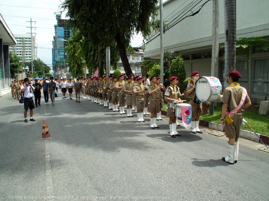 หลังจากนักเรียนที่จะไปแปรอักษรขึ้นรถมุ่งสู่สนามศุภชลาศัยกันแล้ว ลูกเสือและดุริยางค์ก็ยังคงซ้อมเตรียมความพร้อมกันอยู่